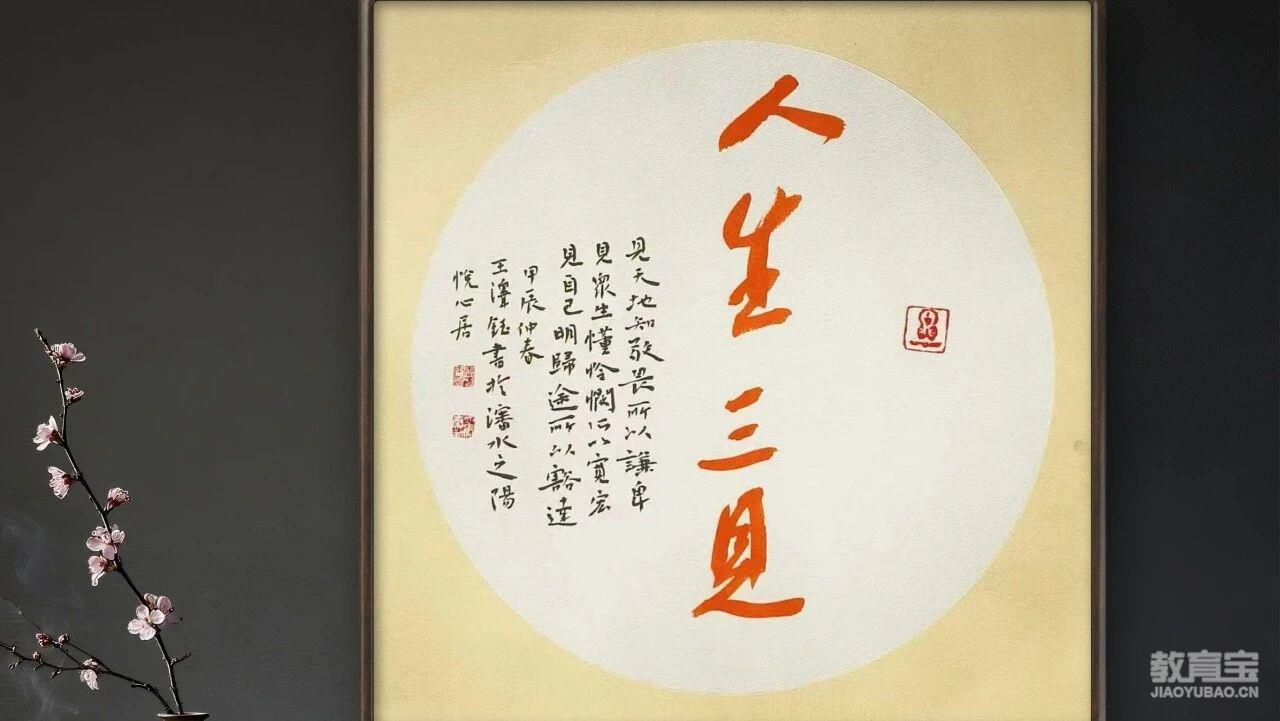 看王泽钰老师用朱笔写的《人生三见》,朱砂色凝着韵致,笔锋转来转去,刚好把人生要修的三重境界勾出来了。这三重境界跟钥匙似的,能开心里那扇“豁达”的门——到底是哪三层?先见天地——看天地多大,四季轮着转有规律,才懂自己多小,心里发怵,姿态自然就低了,学会谦卑。知道天地大了,...