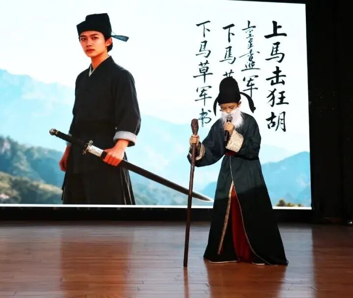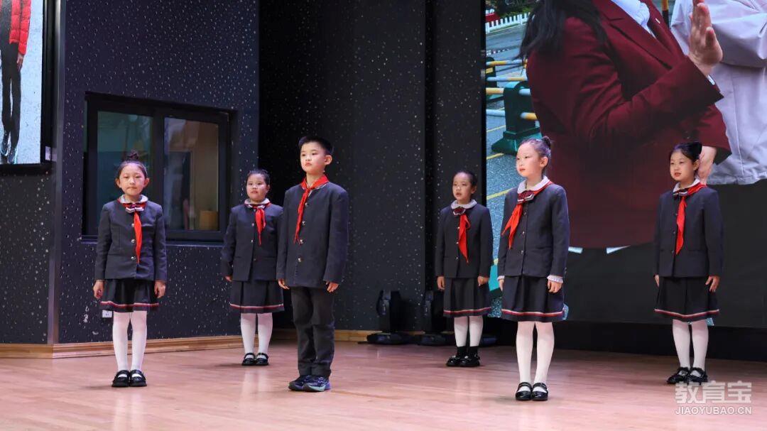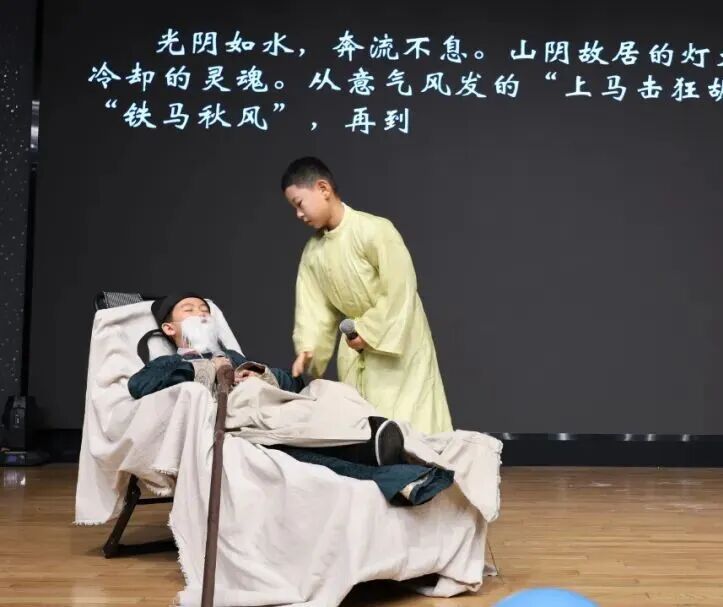 五年级同学通过课本剧《示儿》,以时空穿越的创意形式,再现了陆游“位卑未敢忘忧国”的赤子情怀。六年级学生则以《重温长征精神》为主题,用铿锵有力的诵读,传递“红军不怕远征难”的豪迈气概,震撼人心。