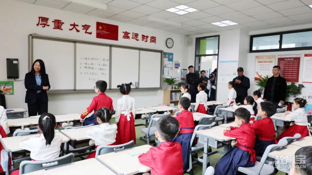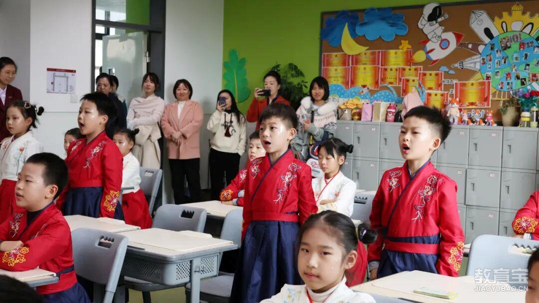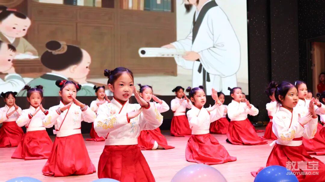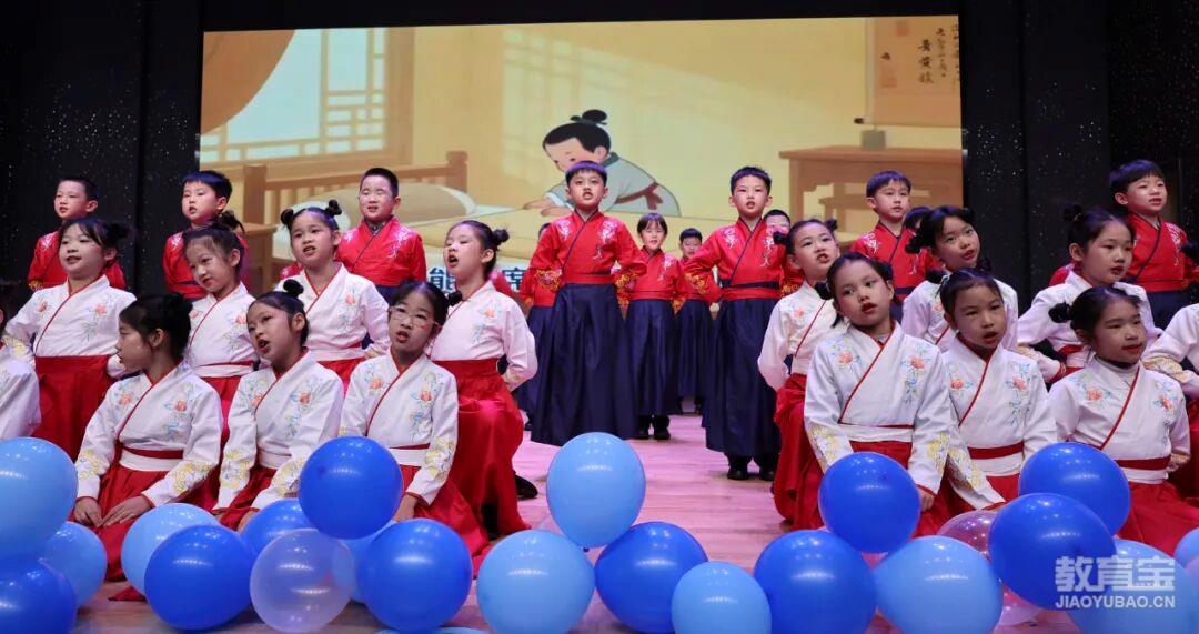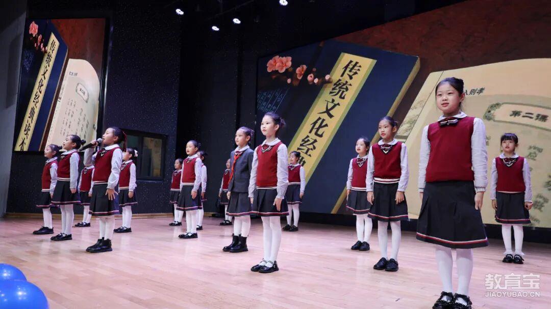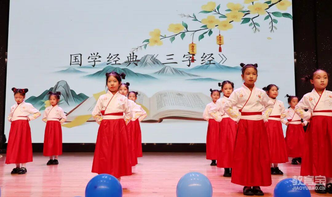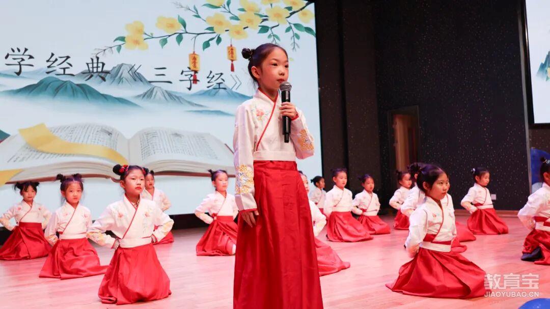 二年级学生则带来了经典诵读《三字经》,在朗朗书声中传递“玉不琢,不成器”的为学之道。孩子们用整齐的节奏与清澈的童声,展现了经典文化的永恒魅力。