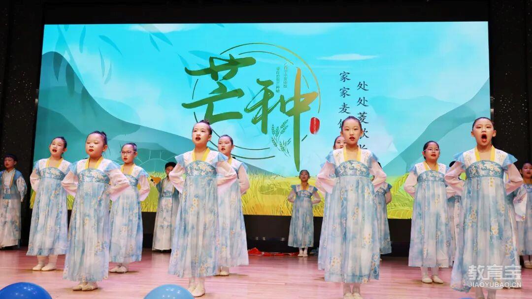 四年级的《诗情画意二十四节气》节目,则以诗、画、乐融合的形式,展现了中国古代农耕文明与自然哲学的完美结合。孩子们用语言与动作,勾勒出二十四节气中的时序流转与生命韵律。