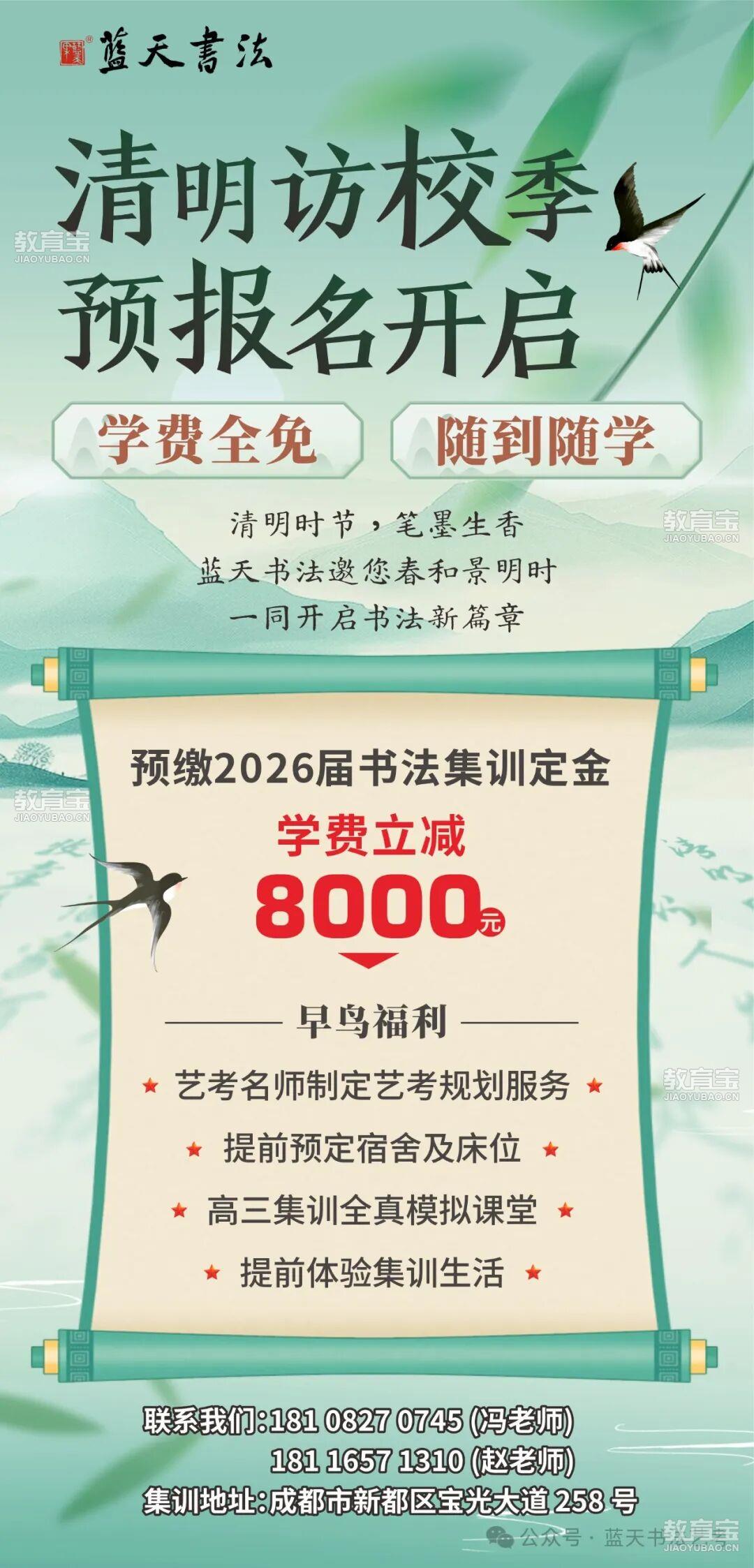2025/11/11 0:07:21“蓝天书法”是成都市金牛区蓝天文化艺术培训学校在教育宝平台开设的店铺,若该店铺内信息涉嫌虚假或违法,请点击这里向教育宝反馈,我们将及时进行处理。