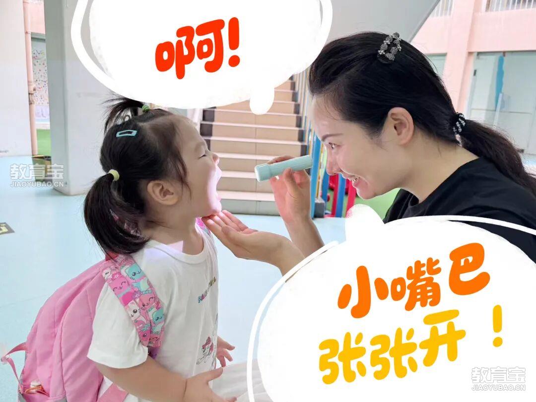 所以,即便工作日的早晨很忙碌,我也喜欢亲自送小竹子去幼儿园,因为我想成为这幸福画面中的一员,我也想被这份快乐传染!“嘀”一声的守护“小竹子,你来啦!”走进花园一样美丽的幼儿园,一眼就会看到笑颜如花的贝贝老师。不管是瑟瑟的秋风里,还是炎热的夏日中,几乎每一个早晨,我都要和贝贝老师一起感受小竹子的“喜怒无常”。主动伸出小手,在体温仪旁“嘀”一下测量体温,接着张大嘴巴“啊”一声让老师检查牙齿,再挤一些免洗手液搓搓手杀杀菌,这是心情大好的早晨;两手藏在身后,离体温仪远一点再远一点,怎么哄都不愿意张嘴的时候,这是情绪低落,还没启动快乐模式的早晨。每当耐心地一哄再哄,小娃依然不配合的时候,贝贝老师都会很温柔贴心地说一句:“没关系,一会儿我到班级里,小嘴巴张开给我看好不好?”追着孩子守护健康,将疾病隔离在班级之外,这“嘀”的一声,让人安心。