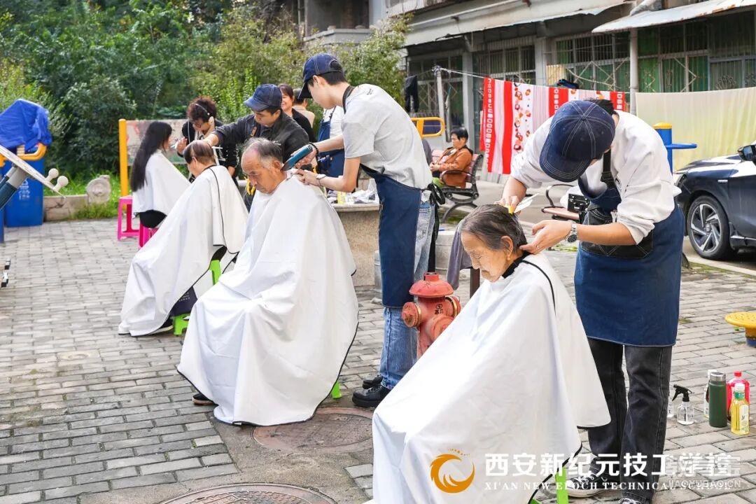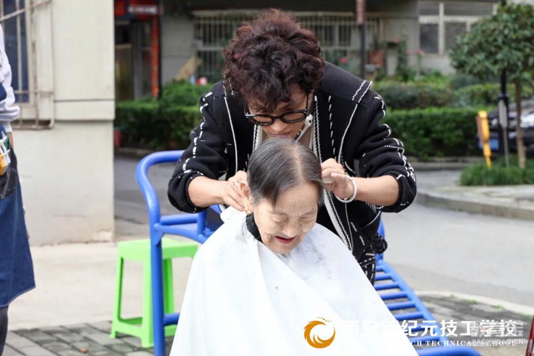 青春义剪为爱出发— 公益实践活动 —一把剪刀,一份匠心一缕青丝,一片真情我们用专业技能为社区增添一抹秋日的暖阳——美业学子社区义剪活动纪实实践活动