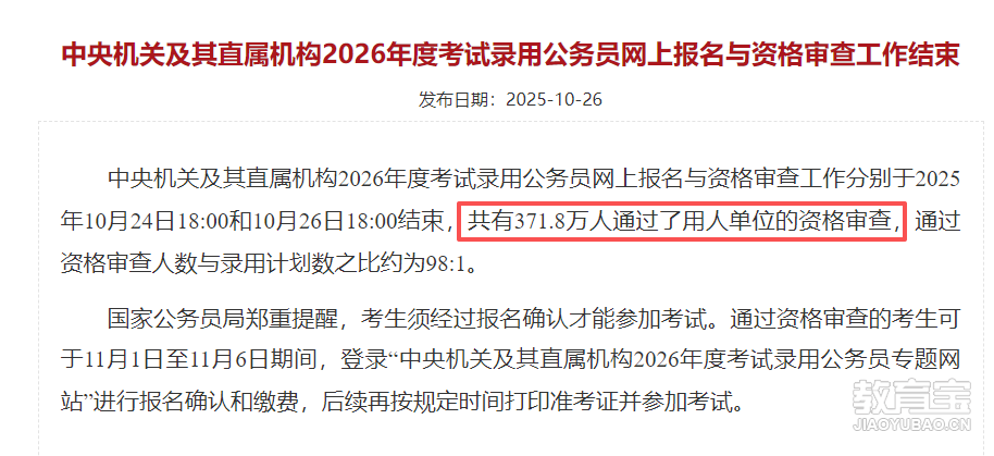 今年的国考报名人数,定格在了371.8万。