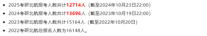 那么,这种趋势具体会带来什么变化?我们来简单分析两个大家*关心的问题。①考研人数会下降30w吗?这个还真说不准,这次国考报名人数增加与国考宽松的政策有一定关系:本次国考报名年龄放宽到38岁,应届硕士、博士毕业生的年龄放宽到43岁。但学姐觉得今年报名人数或多或少还是会降低。就拿北航来说,截至10月23日,报考人数是11800人,比去年同期少了将近1000人,降幅7%左右。ps:这已经是北航连续第四年报名人数下降了。