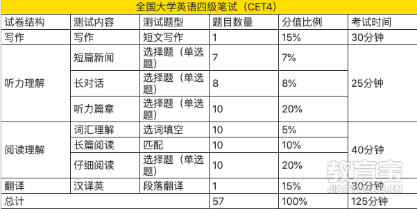 01四六级分值比例四六级试卷的卷面原始分是满分100分经过一系列复杂的换算之后,最终以满分710分的形式报道各位考生的四六级*,即你*单上的报道分四级考试题型+分值比例