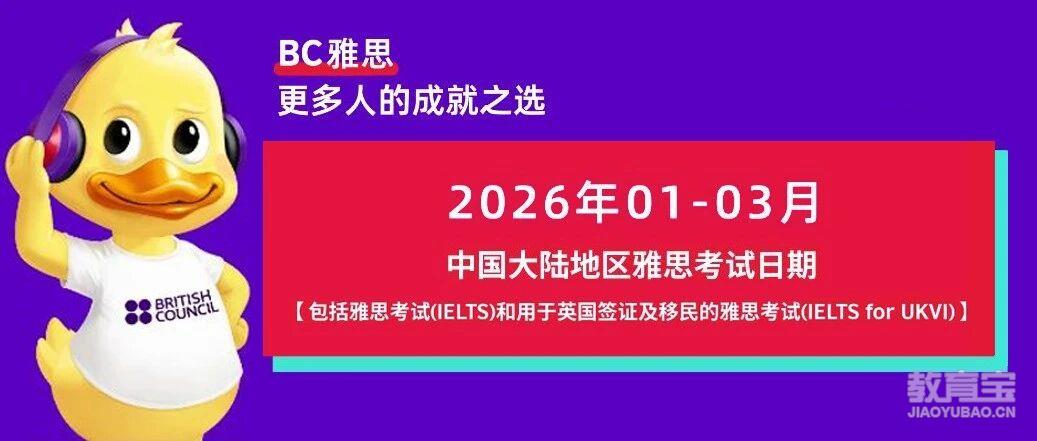 2025/11/25 0:02:442026年1-3月的雅思考试,报名通道已经开了!打算这三个月考的同学注意——赶紧去查具体考试日期,早报早安心!图源:IELTS雅思官微