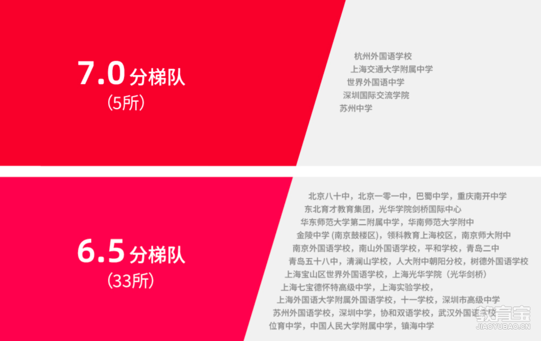 中国大陆地区雅思6.5分以上中学榜单(总分)