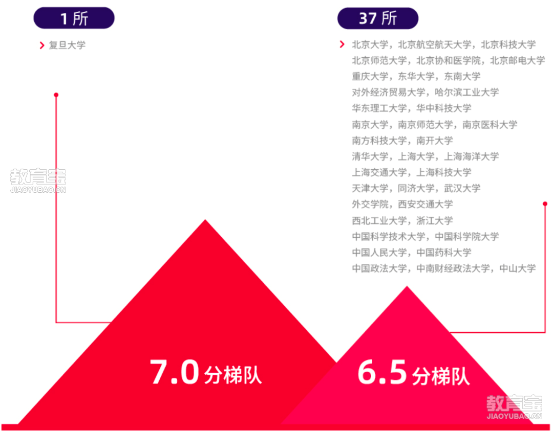 中国大陆各院校雅思均分不仅如此,官方还统计除了省份之外全国“双”高校学生的雅思*表现。全国“双”高校的考生*表现持续,共有38所院校的学术类雅思总分平均分进入6.5分及以上梯队,其中复旦大学单独位列7.0分梯队,另有3所高校跨入6.5分梯队。