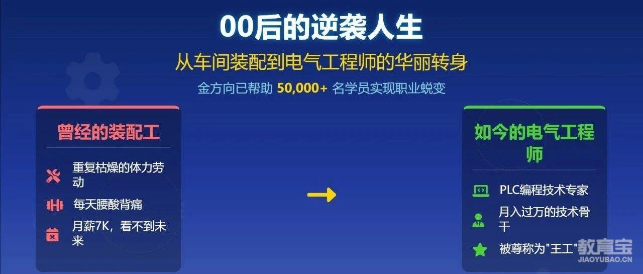 2025/11/17 0:07:19点击上方蓝字关注我们学员背景:王工,00后,专科机电一体化专业毕业后做了将近1年的电工装配却苦于体力活“累蒙了”是什么决定了他要改变要做电气工程师呢?我们来看看他的故事毕业后的第一周找到电气工程师工作装配转电气工程师的开始回顾过去,苦尽甘来1. 迷茫的起点:体力劳动的...