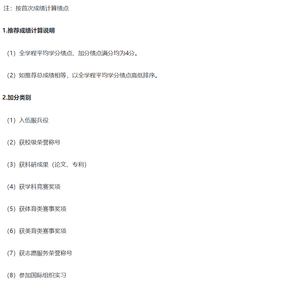 推荐*计算办法:推荐*=入学至推免时的全学程平均学分绩点*0.75 + 加分绩点*0.25。