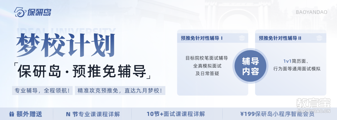 2025/11/24 0:09:49“北京保研岛”是深圳保研岛信息科技有限公司在教育宝平台开设的店铺,若该店铺内信息涉嫌虚假或违法,请点击这里向教育宝反馈,我们将及时进行处理。