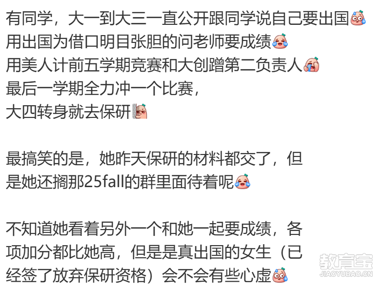 为了保研,你可以......01以出国留学为理由跟老师要分