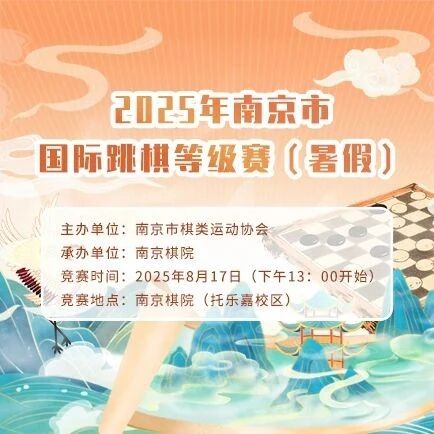2025/11/18 0:05:002025年南京市国际跳棋等级赛(暑假)竞赛规程本次赛事由南京市棋类运动协会主办,南京棋院承办。比赛定在2025年8月17日下午1点,地点是南京棋院托乐嘉校区。参赛单位包括南京市各学校、俱乐部、培训中心,个人也能报名。共设五个组别:九级棋士组(需持对应证书)、十级棋士组(...