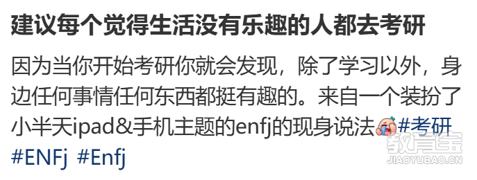 十一月朋友圈、社群里开始出现一种神秘共鸣:“建议每个觉得生活无趣的人,都去考研,考着考着你就会发现:生活处处是快乐,学习才是人类*伟大的折磨。”没办法,谁让这个阶段的学习难度比心情起伏还大。但也是在这段时间,你会神奇地发现:★只要不学习,干啥都香??连“手机主题换装”...