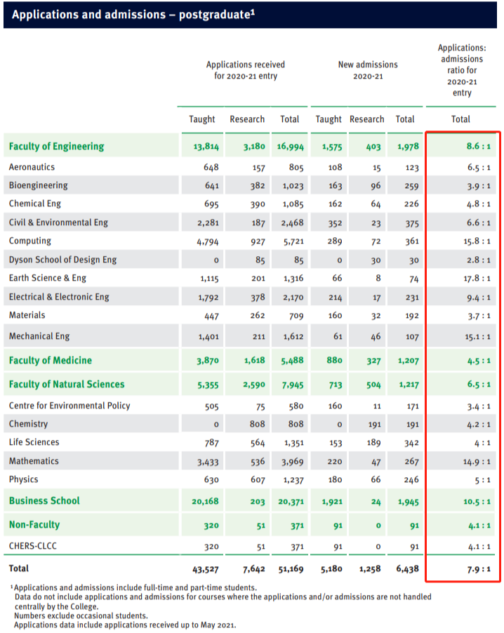 而近日,帝国理工学院,也在其官网公布了2020–2021年的申请数据