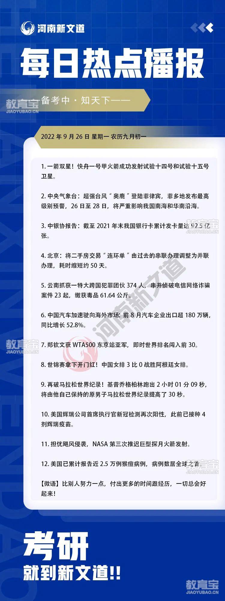 ? 要 闻 ? 2022年9月26日 |星期一 end 声明:本文由河南新文道编辑整理发布,转载请注明 关于版权:河南新文道尊重创作者版权,如有侵权,请联系删除
