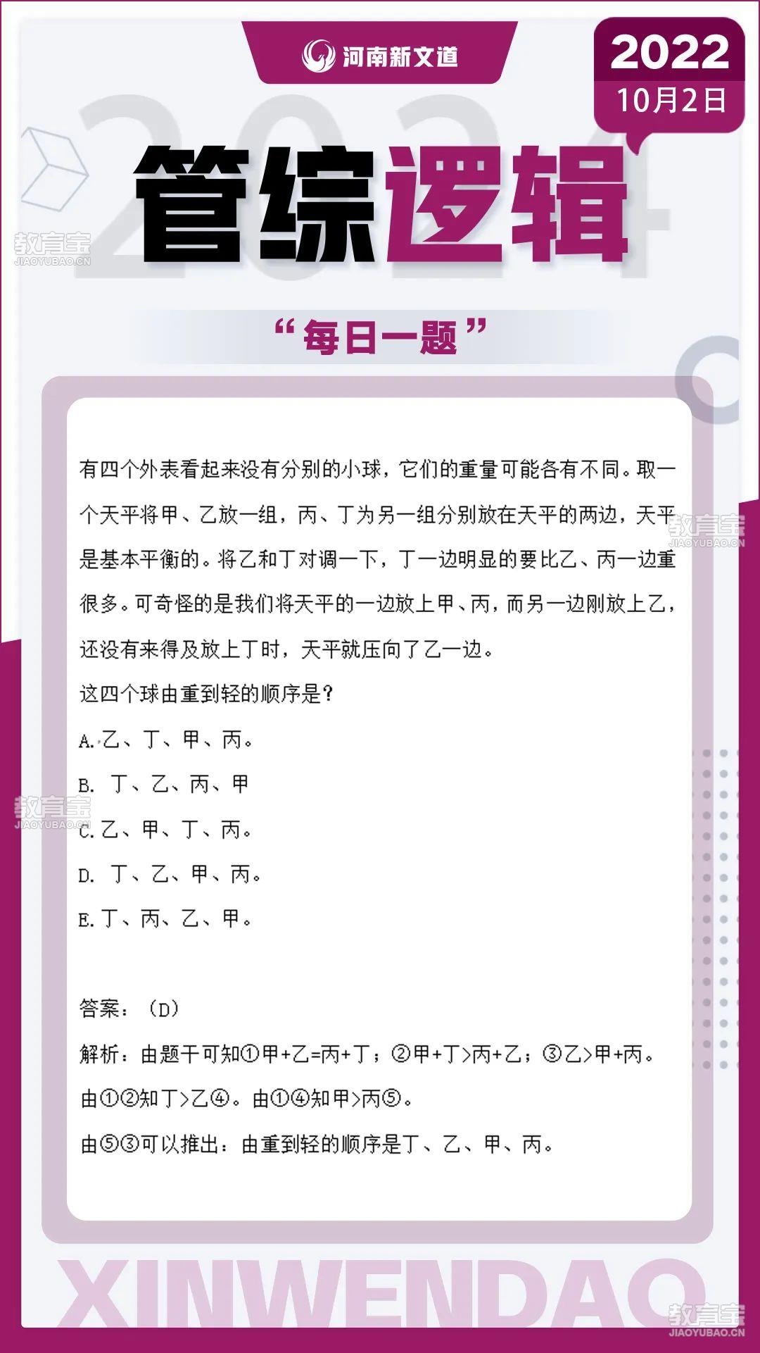 2022年10月2日 | 星期日9 “ 眼里有不朽的光芒,心里有永恒的希望 。 ”每日 一题1 >>考研英语2 >>考研政治3 >>考研数学4 >>考研管综逻辑“ 日拱一卒,功不唐捐。” 今天的每日一题结束啦~ 每天五分钟 进步轻轻松松~ 一起学习打卡...