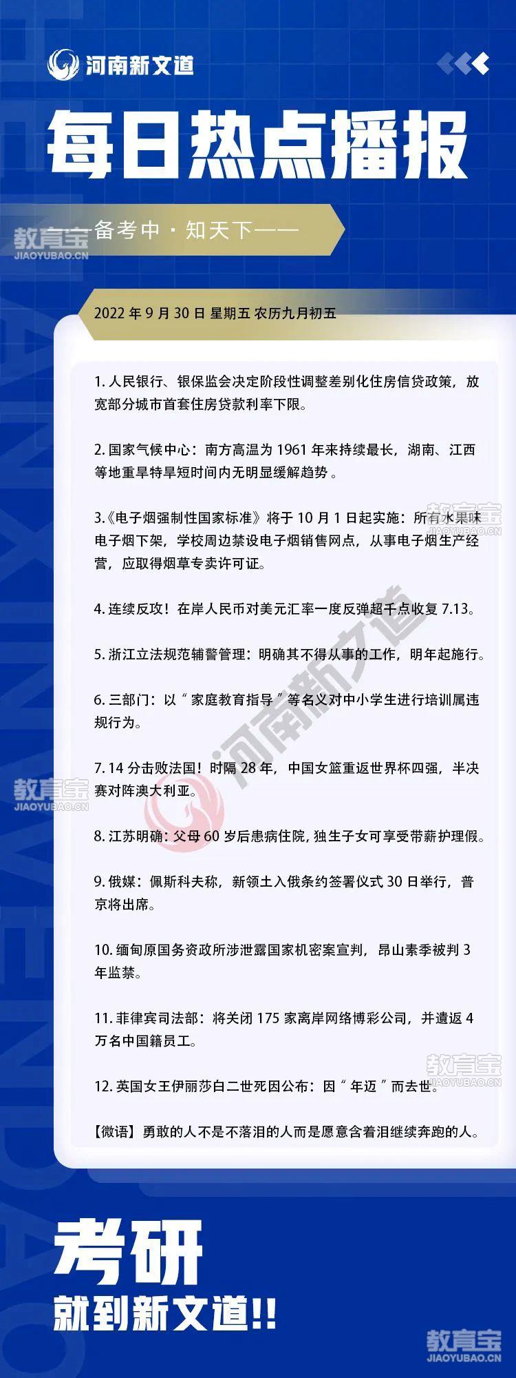 ? 要 闻 ? 2022年9月30日 |星期五 end 声明:本文由河南新文道编辑整理发布,转载请注明 关于版权:河南新文道尊重创作者版权,如有侵权,请联系删除