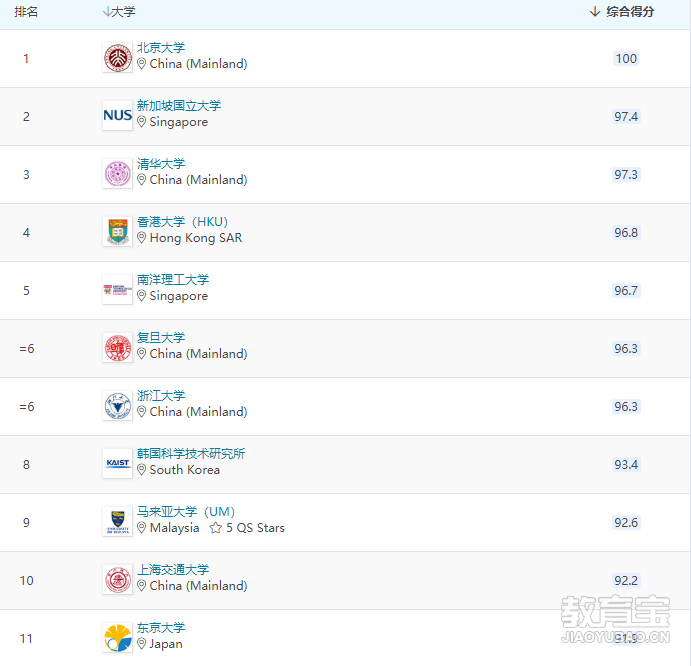 添加微信小助手18900767506,免费领取各国留学资料包 11月8日,国际高等教育研究机构QS Quacquarelli Symonds发布了 第十五版亚洲地区大学排名 。 本次亚洲地区大学排名 涉及760所高校,为历年*多 ,评估依据包括学术水平、毕业生就业能力、研究质量、资源优势和国际化程度...
