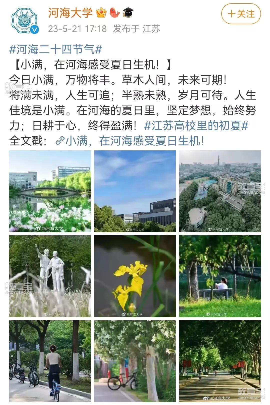 图源河海大学微博 尽管校内食堂一般,宿舍环境也被吐槽已久,主打一个“艰苦朴素”的生活作风,但目前许多宿舍区都已经经过了翻新,获得了四人间、上床下桌、有独卫有空调的快乐。 不仅如此,身处偌大的南京城,不仅可以约上好友尽情游玩,还因为学校靠近各大商圈,拥有了吃喝玩乐随心选择的自由。 今年的5月8日,位于常州市金坛区长荡湖畔的河海大学常州新校区终于竣工,新校区将作为河海大学的主体校区之一于2023秋季学期正式投用。 校区内的众多新、新学院也将服务于常州当地的产业需求,致力于在新能源、新材料、人工智能、机械装备等新兴领域开辟出新的赛道。 明日未知而可期,“出了河海,便是江湖”或许不仅仅只是一句玩笑。一代又一代青年人从这里走出去,他们是承载未来的水之子,也是肩负传承的河海人。 “大哉河海奔前程,毋负邦人期。”今天他们从这里出发,也必将在未来,汇聚出属于自己的时代潮音。